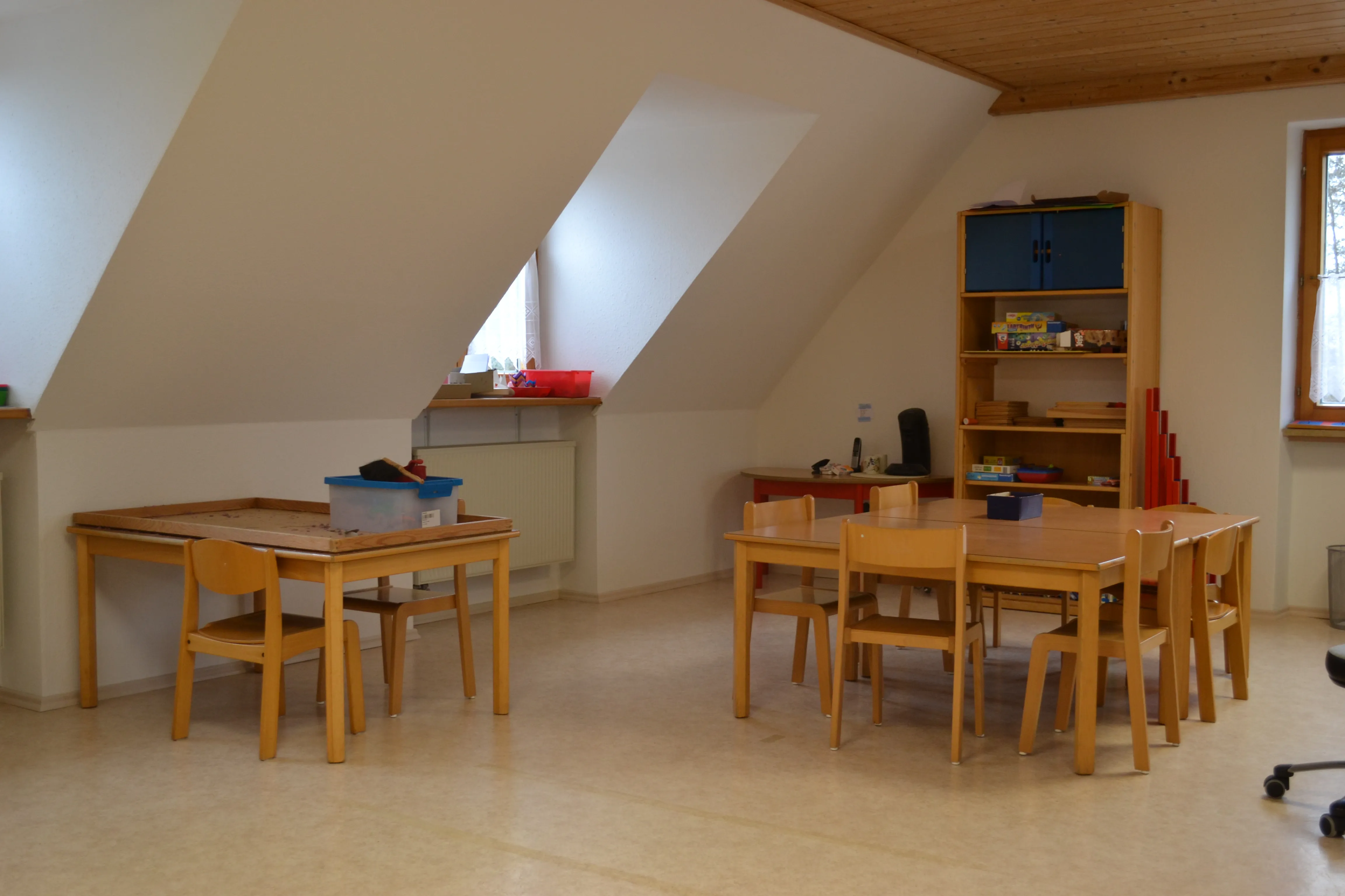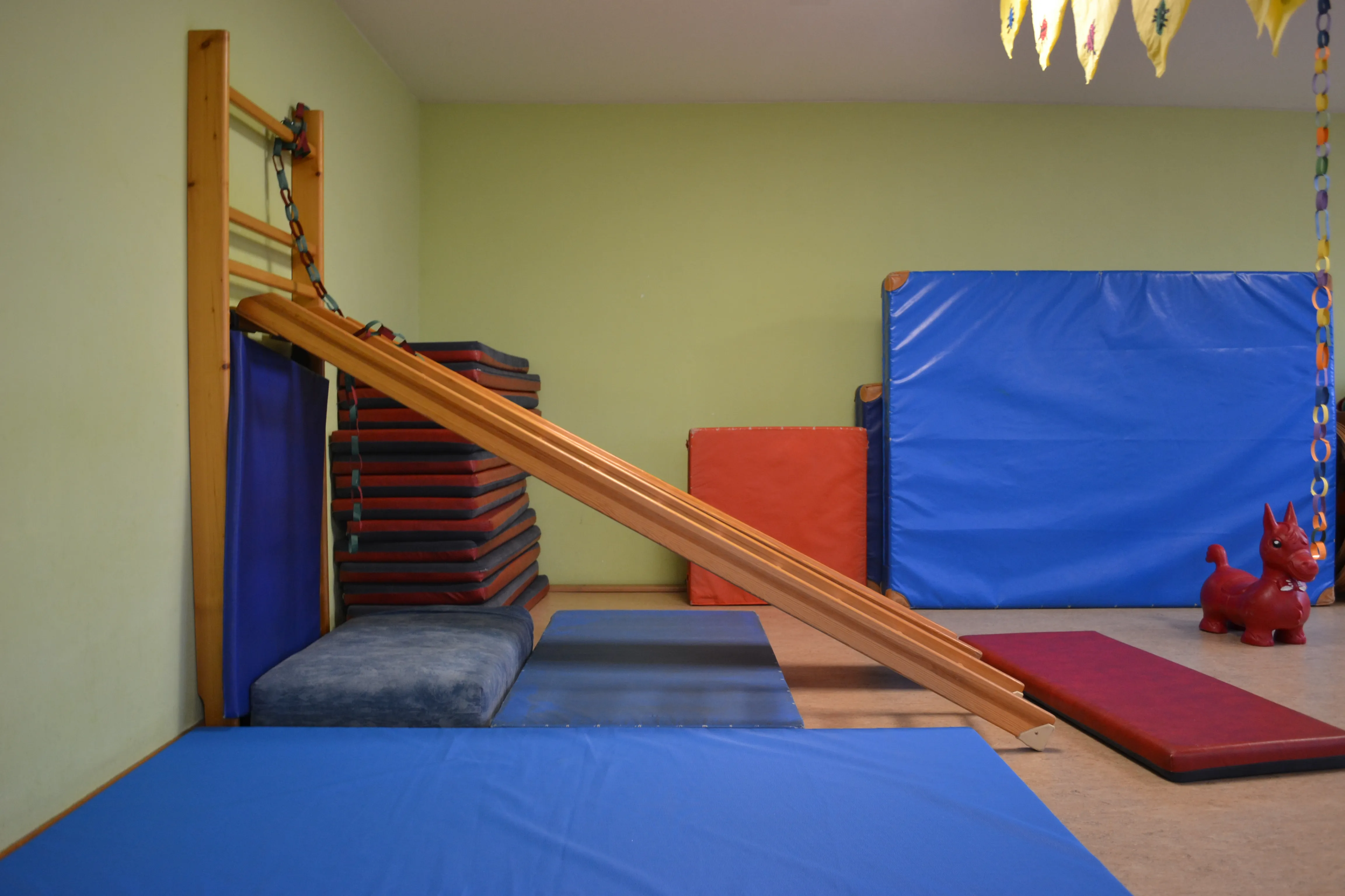 In unserer altersgemischten Gruppe betreuen wir Kinder im Alter von zwei Jahren bis zum Schuleintritt. Die Kinder erleben bei uns einen Alltag, der auf Vertrauen, Wertschätzung und Beteiligung basiert. Unser teiloffenes Konzept ermöglicht es den Kindern, zwischen verschiedenen Spiel- und Lernbereichen zu wählen – je nach Interesse und Entwicklungsstand. Die Einrichtung erstreckt sich über drei Ebenen mit vielfältigen Räumen: Gruppenraum, Kreativbereiche, ein großzügiger Turnraum im Untergeschoss und mehr. So fördern wir Bewegungsfreude, Selbstständigkeit und ein soziales Miteinander. Eltern sind für uns wichtige Partner – wir pflegen eine offene, wertschätzende Kommunikation und binden sie aktiv ins Kindergartengeschehen ein.